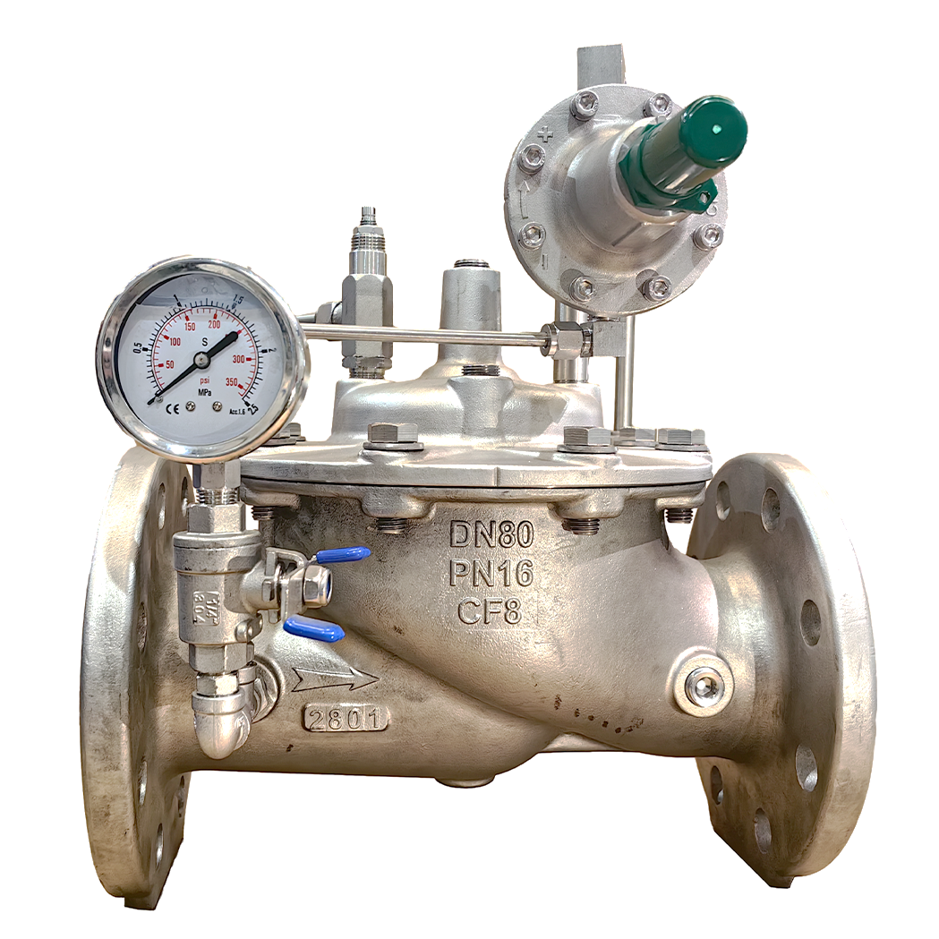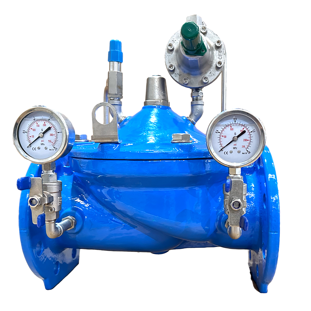 This valve is an accurate, pilot-operated regulator capable of holding downstream pressure to a re-determined limit.