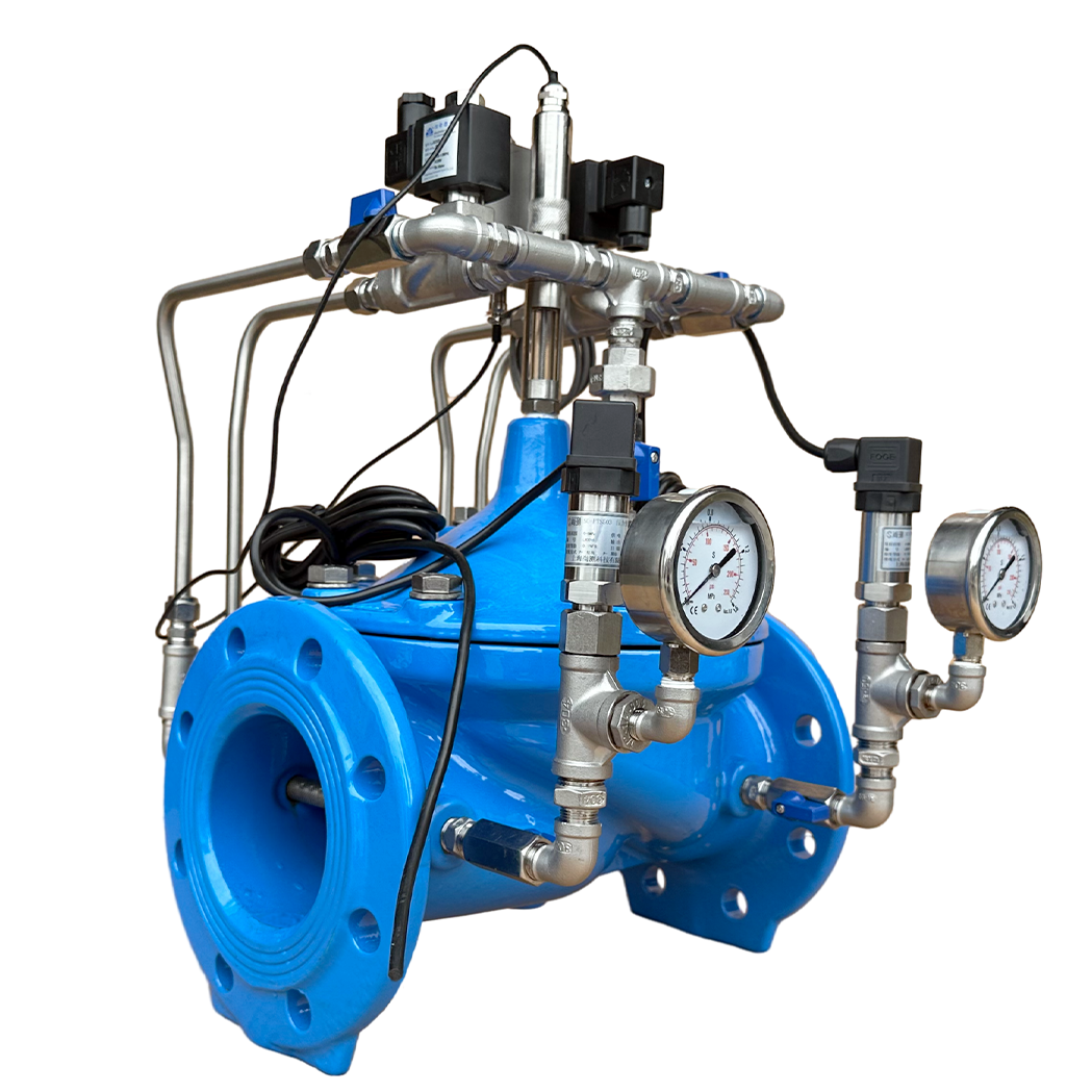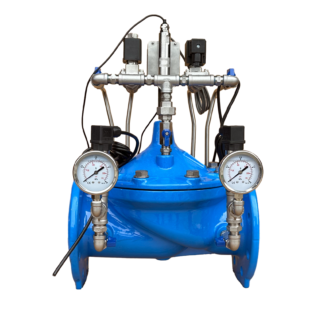 The inlet and outlet end of the main valve are equipped with a solenoid valve to the upper cavity, which can fully open the main valve and reduce the pressure loss caused by back pressure. Also It can keep the main valve opening in a fixed position.